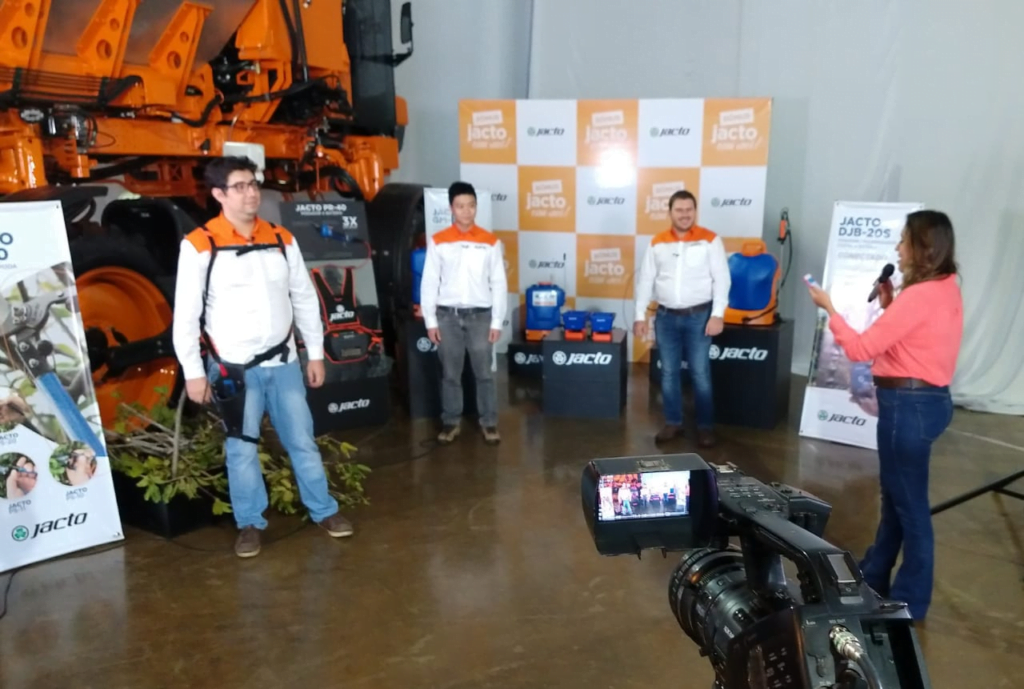 O modelo Jacto PR- 40, um dos itens demonstrados, é uma tesoura podadora a bateria, leve e ergonômica, possibilitando que o trabalho seja feito até três vezes mais rápido quando comparado a uma tesoura de poda manual ao final do dia de trabalho. Principalmente utilizada em pomares de frutas, é capaz de realizar cortes de galhos finos e grossos com facilidade, precisão e agilidade, diminuindo o tempo operacional e aumentando a qualidade da poda.
